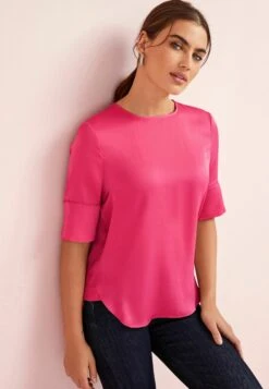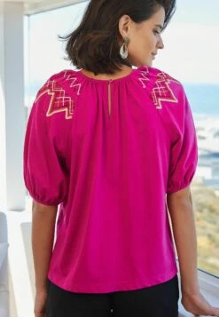 Next Short Puff Sleeves Embroidered Smock Standard – Blouse – Pink