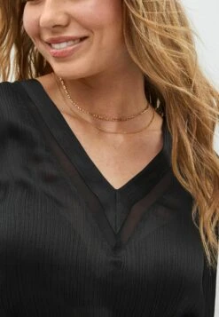 Next Long Sleeve Crew Neck Cuff Standard – Blouse – Black White Geometric