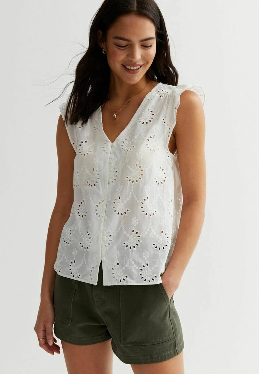 New Look Broderie Frill Sleeve – Blouse – White